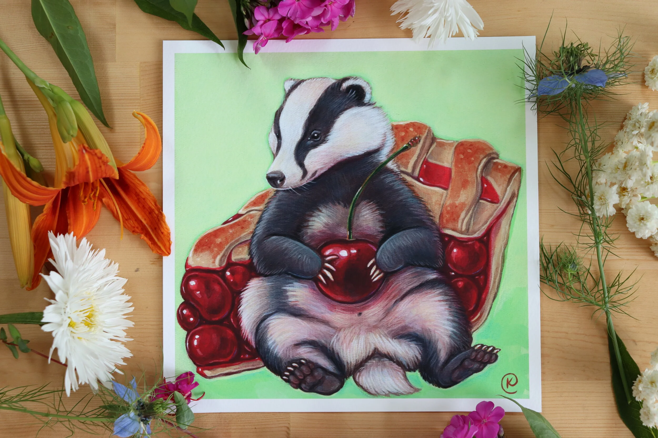 Shop › Cherry Pie Badger 8"x8" Paper Print Image 1 of 1 Cherry Pie Badger 8"x8" Paper Print CA$40.00 8”x8” paper print. 100 years archival cotton rag paper printed on Vancouver Island. Quantity: Add To Cart Added! 8”x8” paper print. 100 years archival cotton rag paper printed on Vancouver Island.