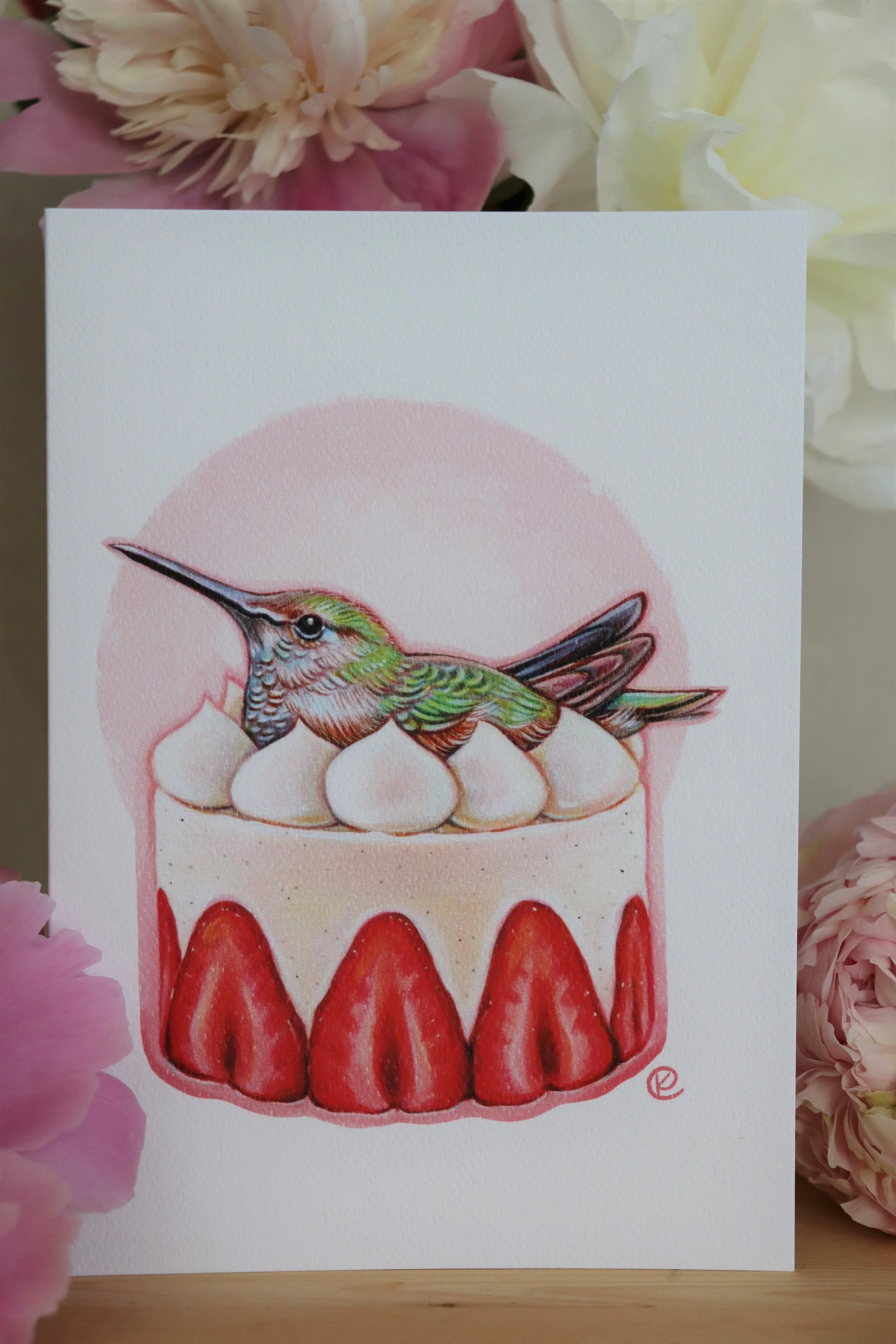 Shop › Hummingbird Fraisier Art Card Image 1 of 1 Hummingbird Fraisier Art Card CA$6.00 5”x7” art card. Blank inside for any occasion! Quantity: Add To Cart Added! 5”x7” art card. Blank inside for any occasion!