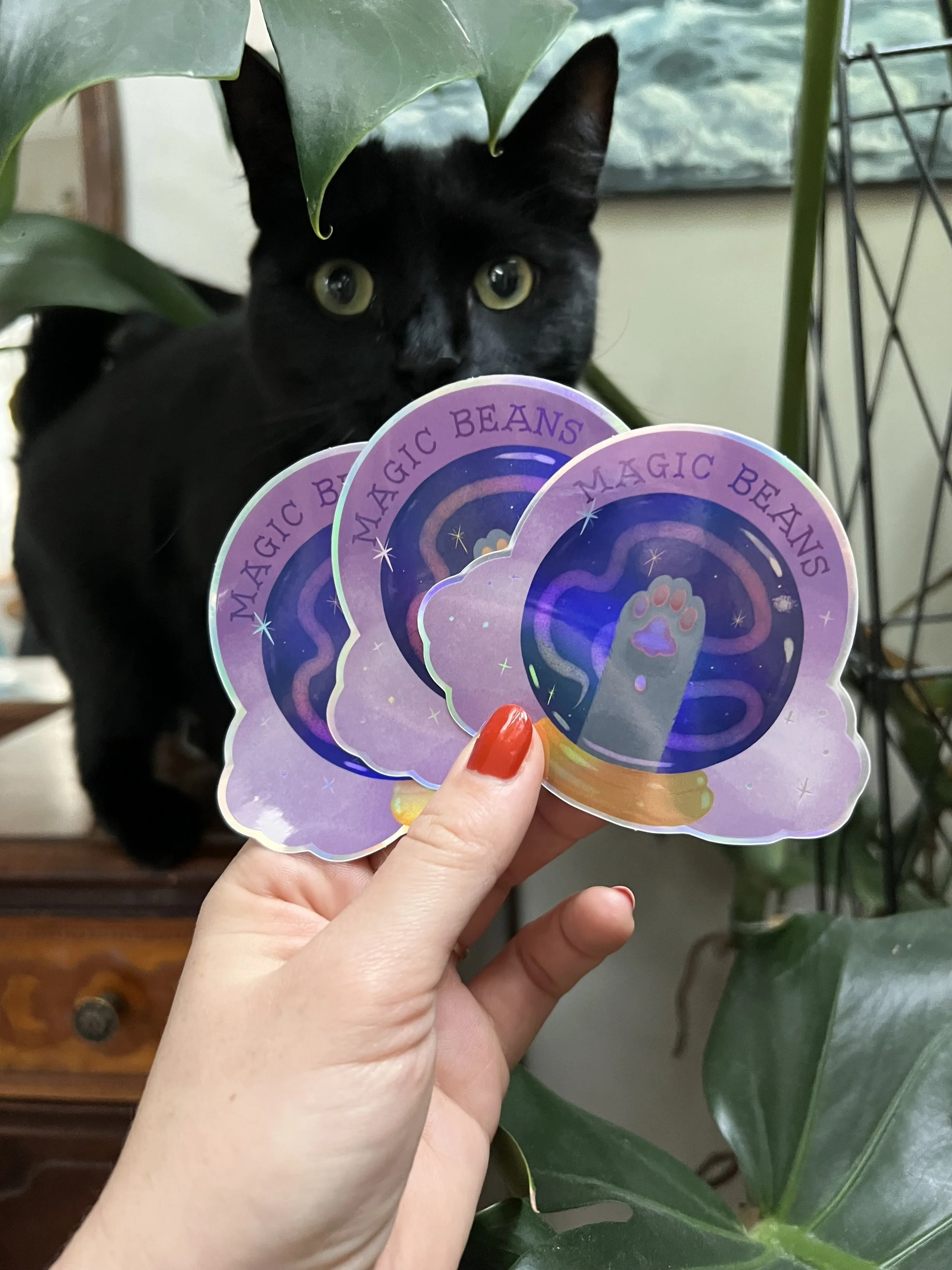 If you have a cat you KNOW those little beans are magic. This sticker is a magical blend of flat colour and holographic sparkle. Stick it anywhere or save it for your collection!
