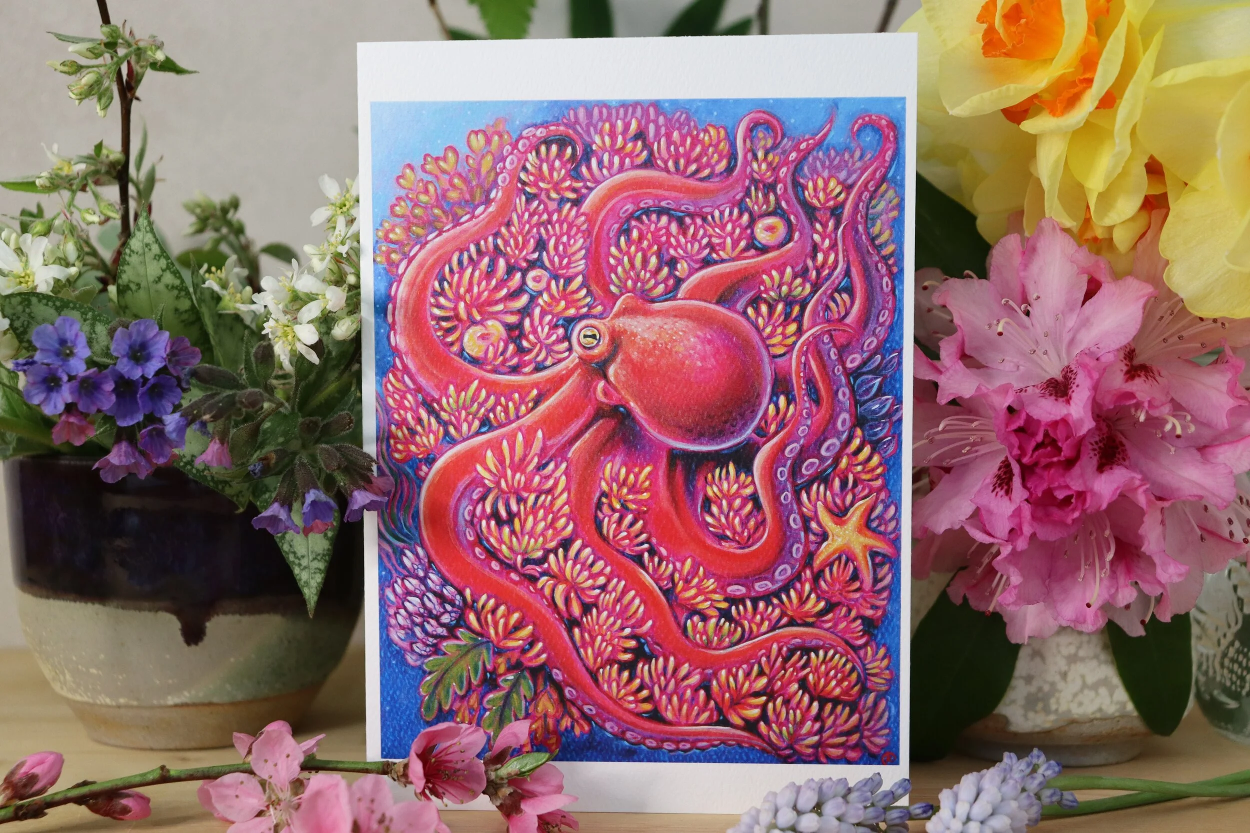 Shop › Octopus and Anemones Art Card Image 1 of 1 Octopus and Anemones Art Card CA$6.00 A magenta octopus is surrounded by her arch anemones. Just kidding: they’re pals! Blank inside for any occasion. Quantity: Add To Cart Added! A magenta octopus is surrounded by her arch anemones. Just kidding: they’re pals! Blank inside for any occasion.